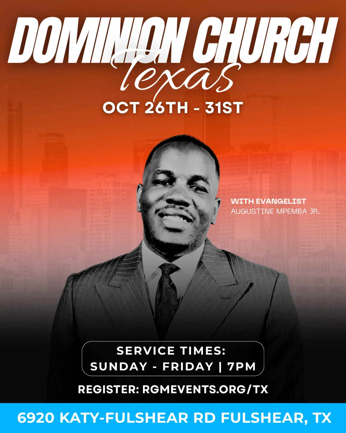 Do you need a miracle? A touch from God? A breakthrough? We want to invite you to join us in these powerful Miracle and Healing Revival Meetings in Fulshear, TX from October 26-31, 2025. Bring your family and friends and come experience the power of God for yourself! It's more than just an event; it's an invitation to encounter the miraculous and step into a new realm of breakthroughs. We would love to have you join us! Don't miss out on these powerful services!